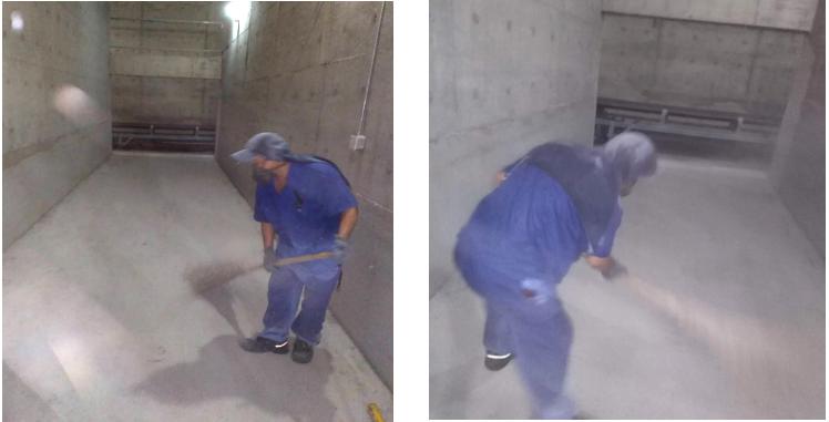 高溫濕熱天氣,皮帶班在地坑認(rèn)真作業(yè),保障生產(chǎn),汗水濕透工服。