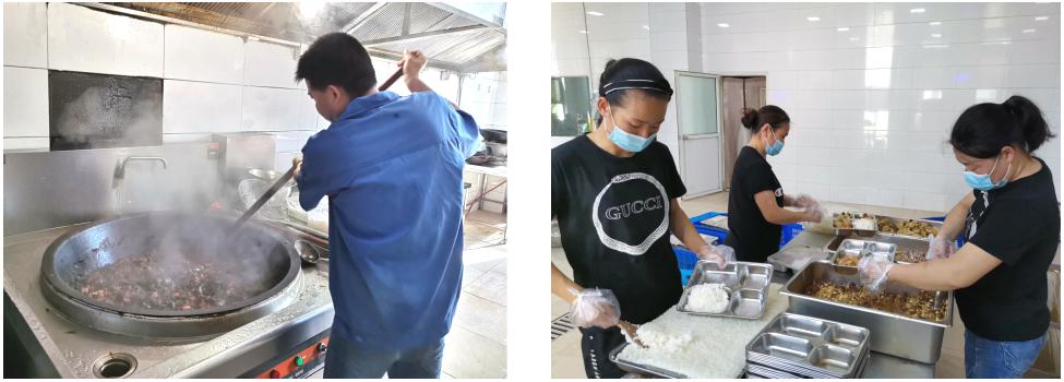 食堂人員為公司職工能吃上可口、健康的飯菜在高溫下忙碌著。