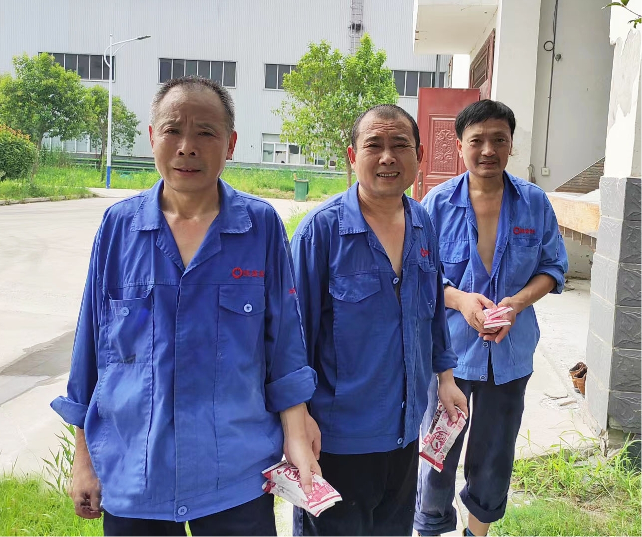 “送清涼”活動(dòng)是公司夏季長期堅(jiān)持開展的一項(xiàng)慰問員工活動(dòng)。在為全體員工發(fā)放高溫津貼的基礎(chǔ)上,食堂每天熬制綠豆湯定時(shí)送到各個(gè)車間;保衛(wèi)處每日做好冰柜的清洗消毒,及時(shí)對雪糕進(jìn)行補(bǔ)貨,為各生產(chǎn)車間員工提供解暑雪糕;為車間提供冰塊,供冷風(fēng)機(jī)使用,以滿足生產(chǎn)一線員工的消暑需求;為車間提供仁丹、藿香正氣液、風(fēng)油精、毛巾、肥皂等防暑物資,切實(shí)把高溫季節(jié)的防暑降溫工作落到實(shí)處。