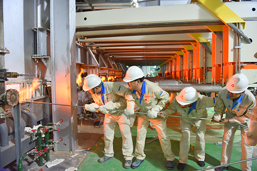 8月26日,中國(guó)首條8.5代TFT-LCD玻璃基板生產(chǎn)線在蚌埠一次性引板成功,項(xiàng)目也由烤窯升溫、聯(lián)動(dòng)調(diào)試階段正式轉(zhuǎn)入試生產(chǎn)階段,為產(chǎn)品批量下線奠定了堅(jiān)實(shí)基礎(chǔ)。凱盛科技集團(tuán)有限公司董事長(zhǎng)、中建材蚌埠玻璃工業(yè)設(shè)計(jì)研究院院長(zhǎng)、蚌埠中光電科技有限公司董事長(zhǎng)彭壽深入一線,全程指導(dǎo)并參加生產(chǎn)線引板工作。