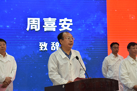 彭壽介紹了項(xiàng)目情況并代表凱盛科技集團(tuán)、蚌埠院向出席儀式的領(lǐng)導(dǎo)和來賓表示熱烈的歡迎和衷心的感謝!他表示,在中國建材集團(tuán)的戰(zhàn)略引領(lǐng)下,在國家相關(guān)部委、安徽省委省政府和蚌埠市委市政府的高度重視下,在社會(huì)各界的關(guān)心幫助下,我們堅(jiān)持自主創(chuàng)新,從2018年12月15日窯爐進(jìn)行安裝,到2019年6月18日點(diǎn)火投產(chǎn)、8月26日成功引板,僅僅70天,創(chuàng)造了自主生產(chǎn)高世代液晶玻璃基板的“中國速度”。特別感謝科技部組織的“十三五”專項(xiàng)團(tuán)隊(duì)、感謝團(tuán)隊(duì)的全體合作者、感謝和蚌埠院一起共同奮斗的合作單位,也感謝客戶的付出。產(chǎn)品的成功下線,標(biāo)志著中國建材開創(chuàng)先河,實(shí)現(xiàn)高世代液晶玻璃基板的安徽制造、中國創(chuàng)造。他表示,我們將牢記習(xí)近平總書記重要指示精神,自力更生、奮發(fā)創(chuàng)新,早日實(shí)現(xiàn)項(xiàng)目達(dá)產(chǎn)達(dá)標(biāo),持續(xù)努力向11代玻璃基板進(jìn)軍,奮力譜寫“千億硅基”,擦亮“創(chuàng)新之城”,建設(shè)“材料之都”,努力打造更多中國第一、中國創(chuàng)造,以優(yōu)異成績(jī)向新中國成立70周年獻(xiàn)禮。