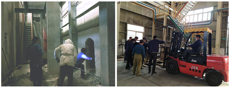 此次窯頭煙道清灰工作分為五組,包括煙道扒灰組、打包組、負(fù)三層至負(fù)二層搬運組、負(fù)二層至地面層轉(zhuǎn)運堆存組及后勤服務(wù)組。每組分工明確,責(zé)任至人,全天共計清理了東西兩側(cè)各兩個煙道積灰。