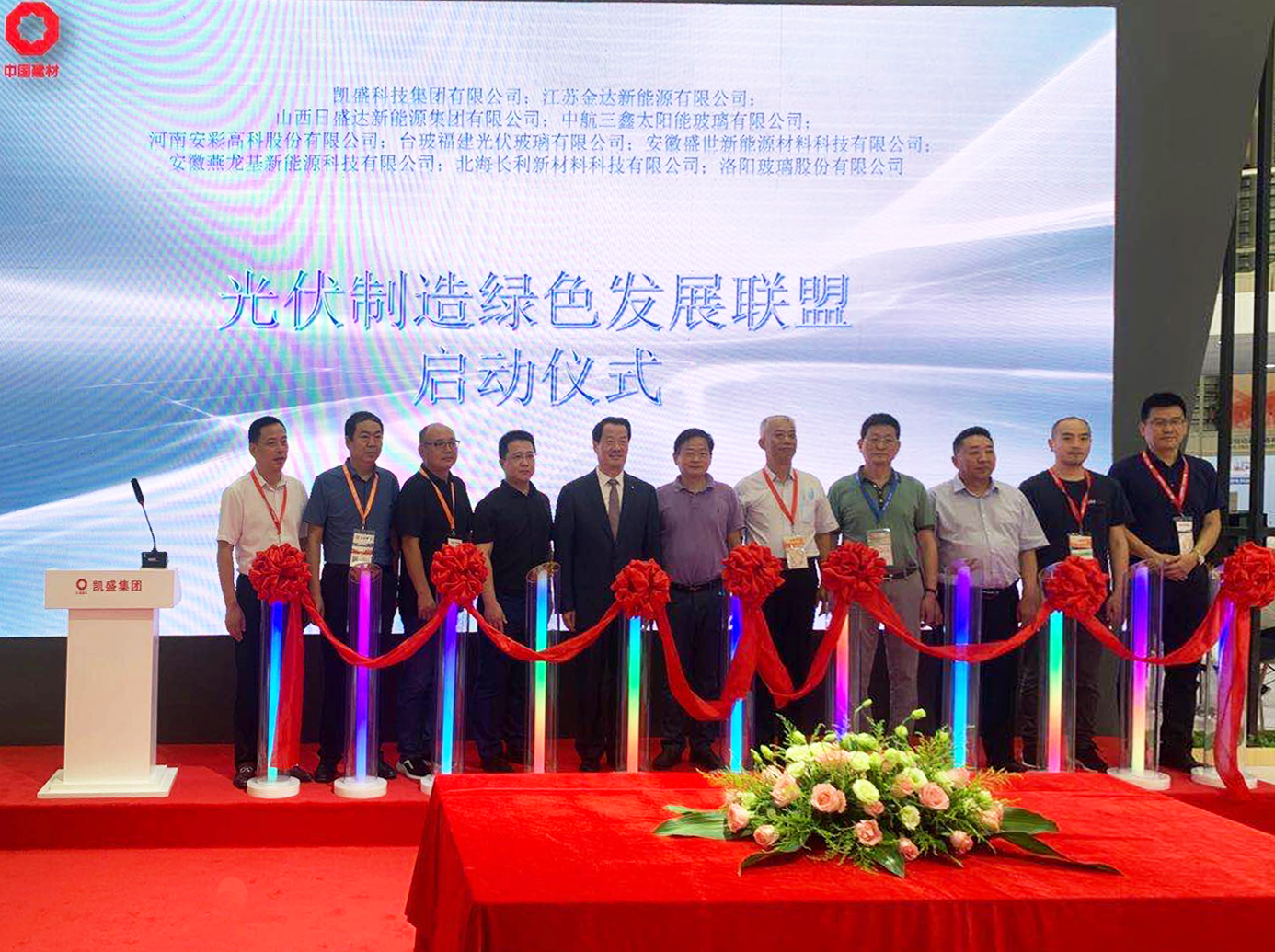 為了推動(dòng)光伏行業(yè)健康發(fā)展,在此次展會(huì)上,凱盛集團(tuán)聯(lián)合安徽盛世新能源材料科技有限公司、江蘇金達(dá)新能源有限公司、山西日盛達(dá)新能源集團(tuán)有限公司、河南安彩高科有限公司、臺(tái)玻福建光伏玻璃有限公司、安徽燕龍基新能源科技有限公司、北海長(zhǎng)利新材料科技有限公司等10家知名光伏制造企業(yè)聯(lián)合發(fā)起的“光伏制造綠色發(fā)展聯(lián)盟”正式啟動(dòng)!我公司總經(jīng)理李剛應(yīng)邀參加了光伏制造綠色發(fā)展聯(lián)盟啟動(dòng)儀式。