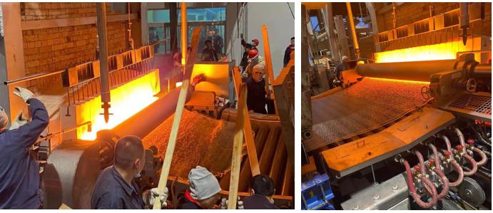 公司董事長李剛和副總經(jīng)理/項(xiàng)目負(fù)責(zé)人王年孝年三十晚舍小家團(tuán)聚,親臨現(xiàn)場組織工作,帶領(lǐng)外地留蚌員工和烤窯團(tuán)隊(duì),攻克難關(guān),解決難題,嚴(yán)控進(jìn)度。歷經(jīng)25天全力以赴的精心準(zhǔn)備,2月14日下午下午18時(shí),經(jīng)過技術(shù)人員和現(xiàn)場操作人員的共同努力,員工們手持工具,小心翼翼地控制玻璃板緩慢地向退火窯方向移動(dòng),終于一條完整的玻璃帶進(jìn)入退火窯。不到一小時(shí),在退火窯的出口,亮晶晶的玻璃緩緩探出,320t/d光伏玻璃生產(chǎn)線的第一片玻璃誕生了!這片玻璃凝聚著為產(chǎn)線努力付出的所有人的心血,興奮和喜悅寫在每個(gè)人的臉上。