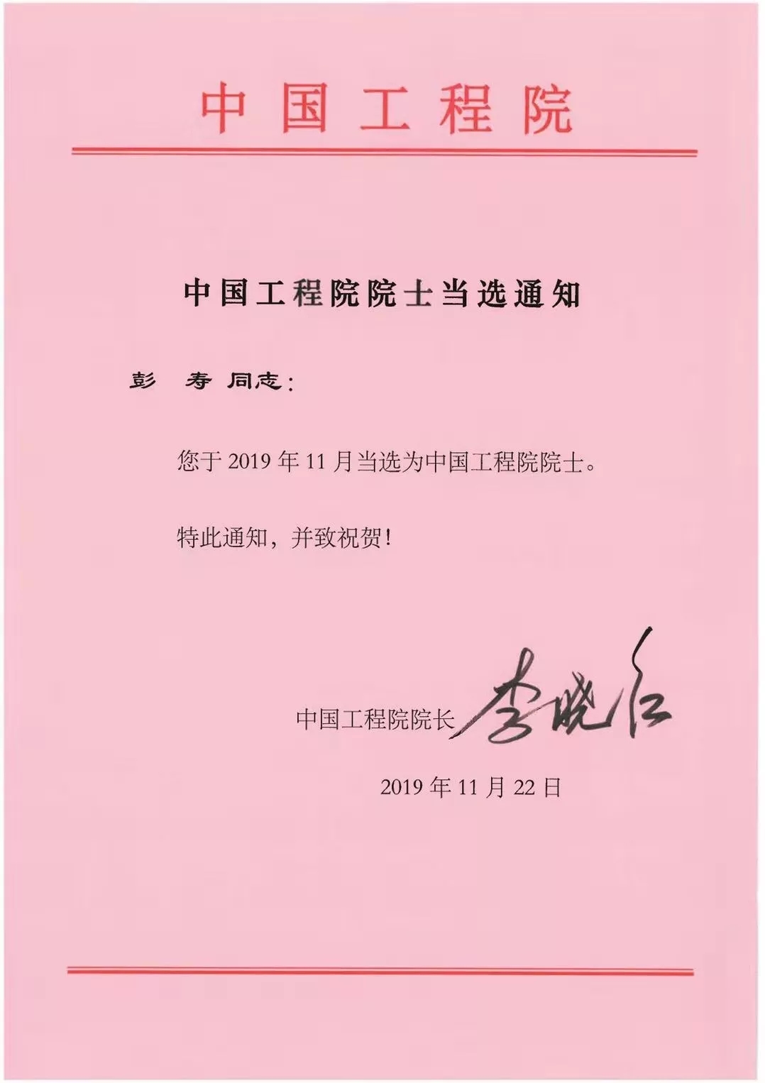 “中國工程院院士”是國家設(shè)立的工程科學(xué)技術(shù)方面的最高學(xué)術(shù)稱號,為終身榮譽(yù)。習(xí)近平總書記在兩院院士大會上指出,兩院院士在我國科技界擁有最高學(xué)術(shù)榮譽(yù)。2019年中國工程院公布的新當(dāng)選院士名單中,9個(gè)學(xué)部共選舉產(chǎn)生了75位院士,其中,化工、冶金與材料工程學(xué)部9人,彭壽是此次化工、冶金與材料工程學(xué)部的新當(dāng)選院士之一。